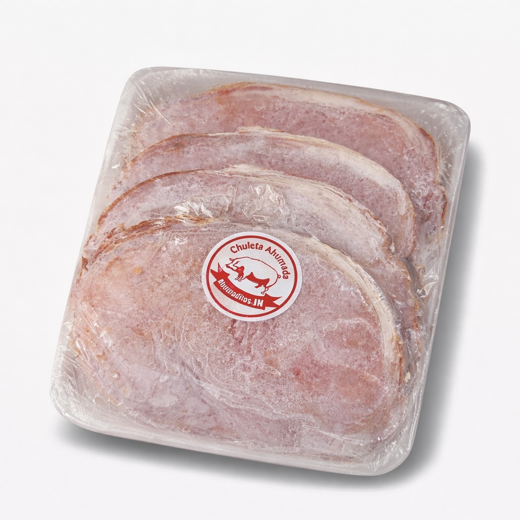 Chuleta de cerdo ahumada, jugosa y de sabor intenso. Ideal para freír, asar o preparar recetas rápidas con un toque ahumado delicioso.